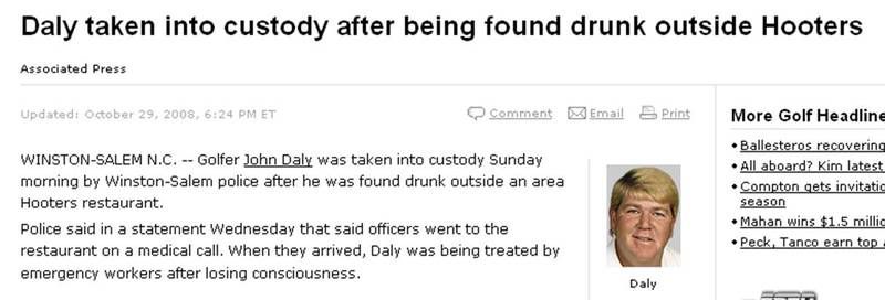 ends with: "Daly was taken to the Forsyth County Law Enforcement Detention Center for a 24-hour stay, until he was sober."